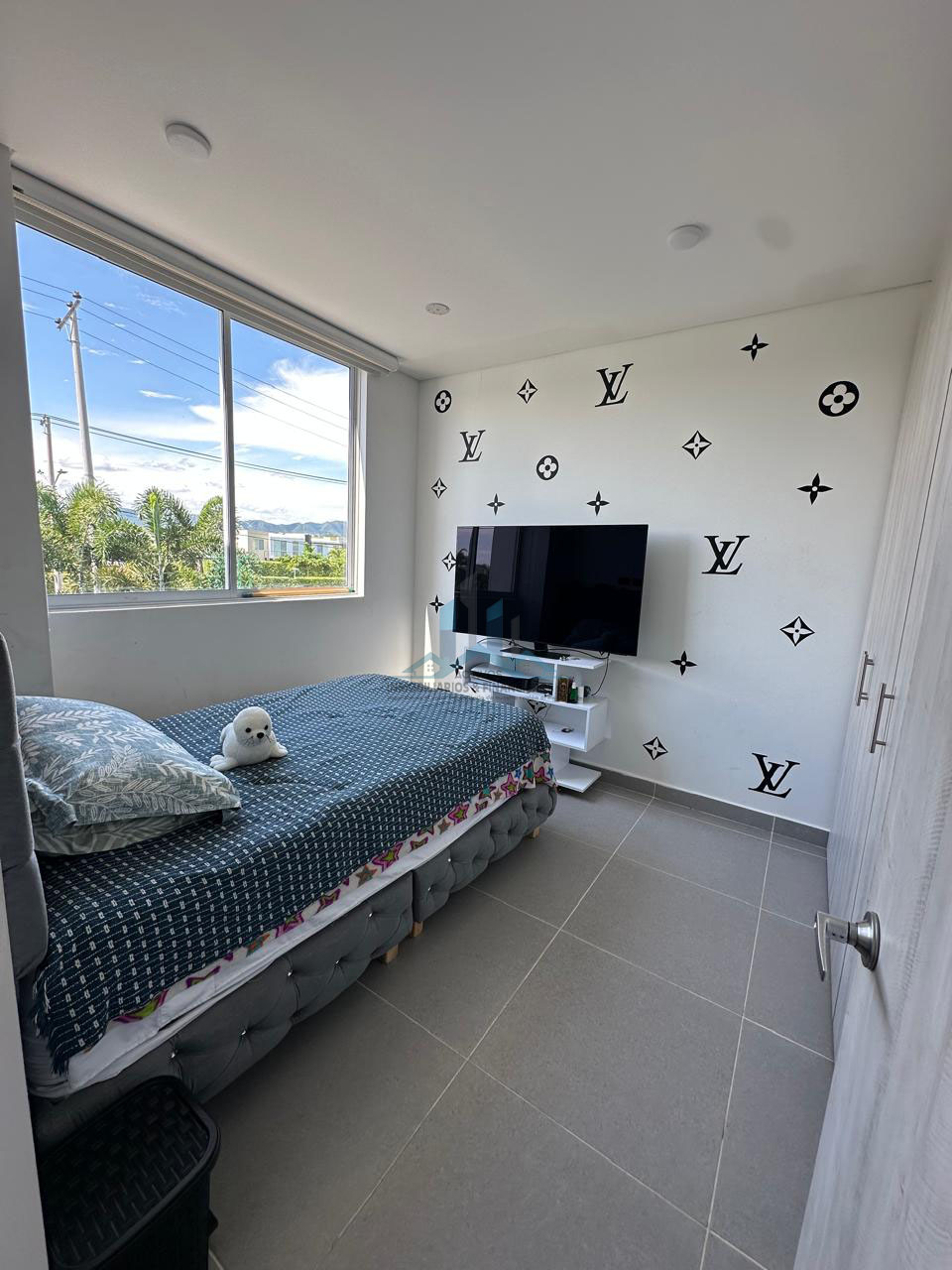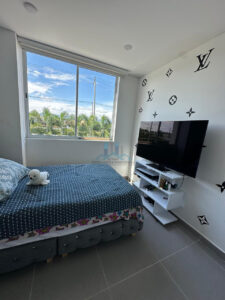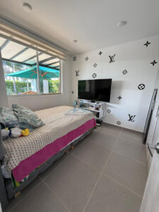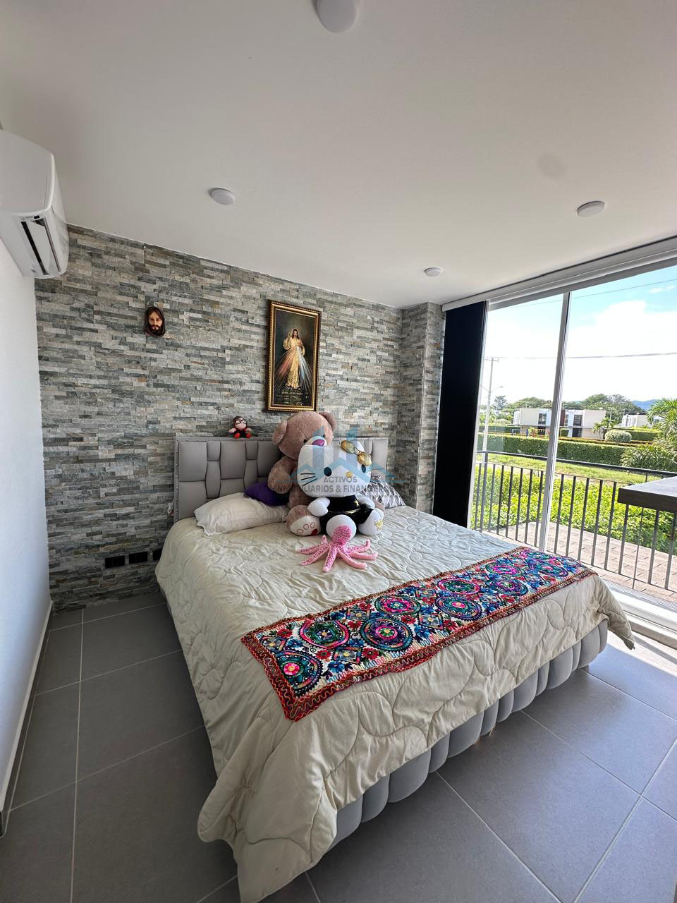 ✨ Dormitorio principal amplio, con pared decorativa en piedra, grandes ventanales y excelente ventilación natural